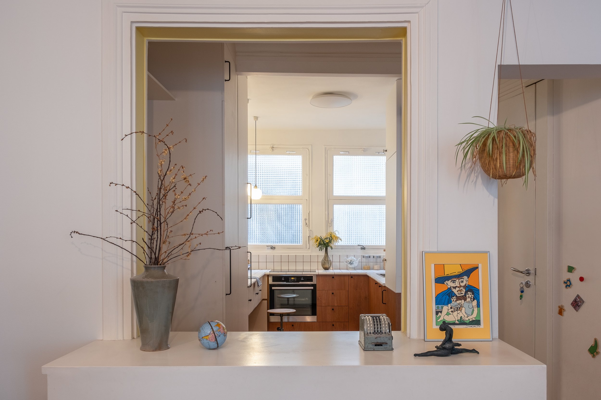 Les clientes voulaient sortir leur cuisine de sa “grotte”, très sombre et peu fonctionnelle, ainsi que créer deux espaces nuits agréables pour leurs filles avec une mezzanine. Les codes bistrot et brocante collaient parfaitement à l’esprit du lieu et des habitantes
